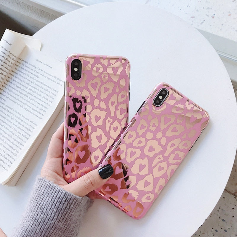 Features: Luxury Pink Leopard Print Laser Phone Cases
