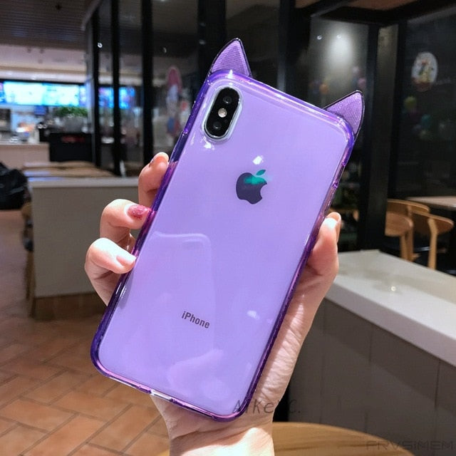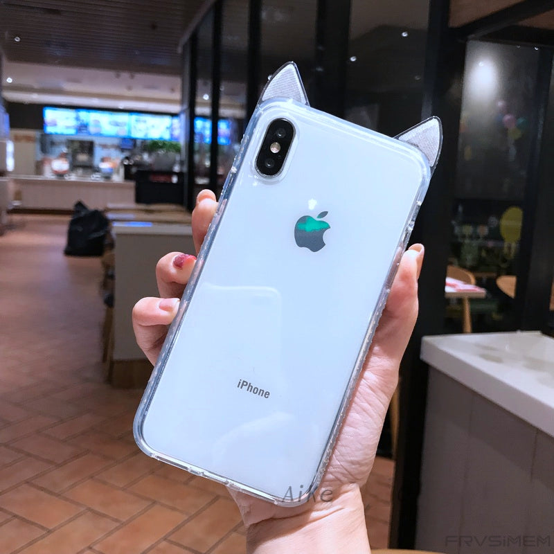 Features: cat rabbit bunny lug ear ears glitter diamond clear case